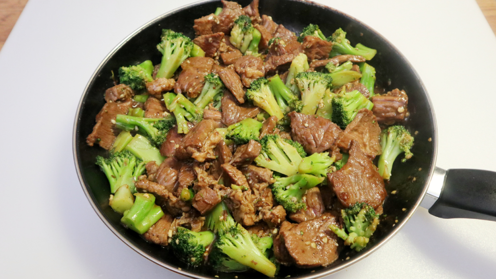 Add a bit more oil and add the garlic. Cook for 5 to 10 seconds. Add the sauce and stir to thicken. Add the broccoli and stir. Add the beef back in and toss to coat. Remove to a serving plate and serve with rice.