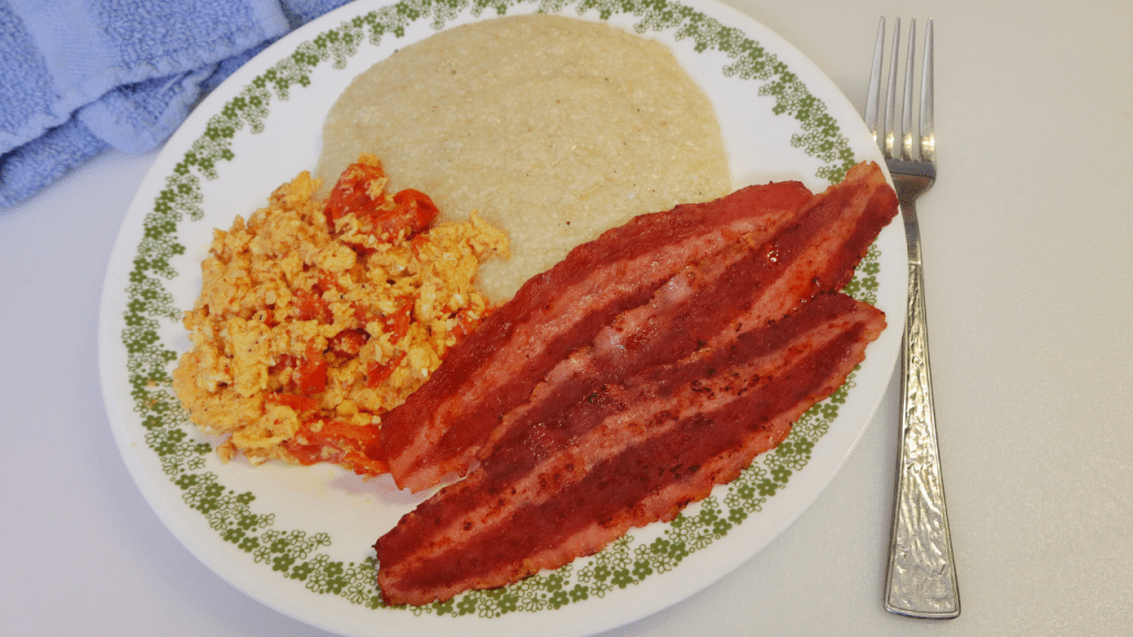 Remove from the pan and serve with the cajun grits and bacon or sausage.