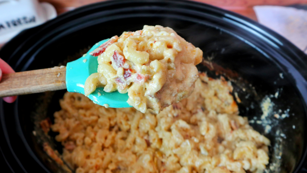 This is a delicious spin on the comfort classic… Mac and cheese. It is so easy and delicious and it takes no time at all in the crock-pot. Mac and cheese is a side dish that is so versatile and you can add so many things to it. I guess that is why mac and cheese is a classic comfort food.