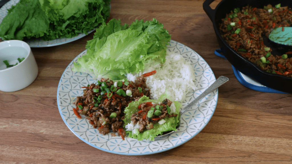 Serve over white, jasmine, or brown rice. You can also serve in lettuce cups. I serve it on the side.