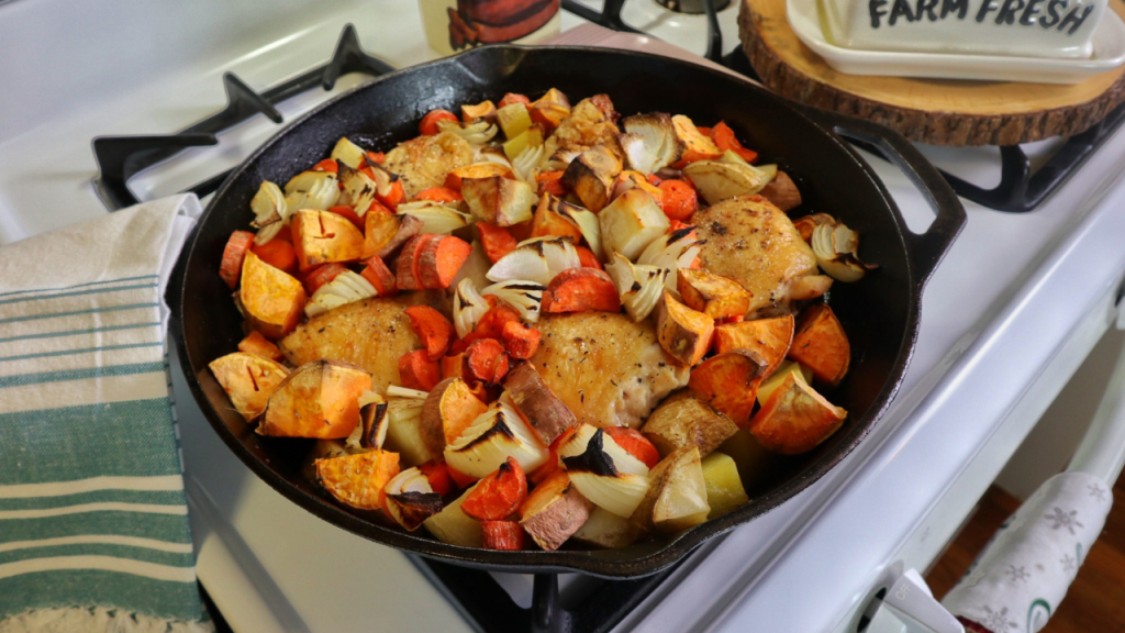 This is one of our favorite Chicken recipes. I have been making this for quite a while and it never disappoints. It is so easy and so delicious plus it is a one-pan meal. I love making this in my cast-iron skillet, but if you don’t have a cast-iron skillet you can certainly make this in a non-stick skillet and then transfer it to a 9×13 inch baking dish.