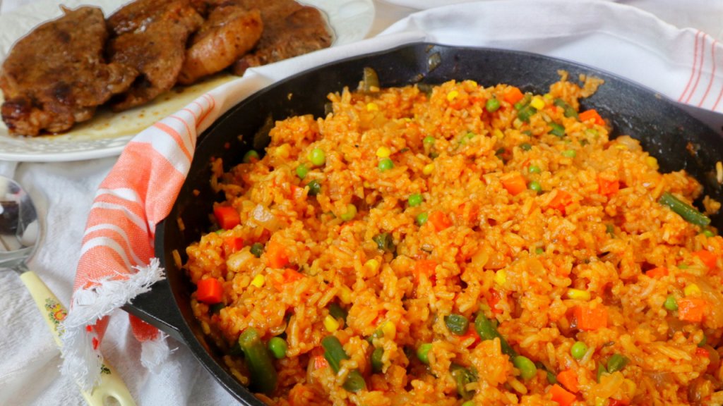 This rice is a one-pan side dish and it is just one of our many favorites. It is the perfect balance of tomato flavor and spice and is packed with delicious mixed veggies. It is the perfect side dish for any meal.