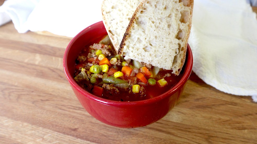Vegetable Soup With Ground Beef We love vegetable soup. I have made this exact soup recipe for many years and it has never failed me. It is so simple but so good. You can serve this with cornbread, bread, crackers, or just as is. The longer it sits in the fridge the better it gets.… Continue reading Vegetable Soup With Ground Beef