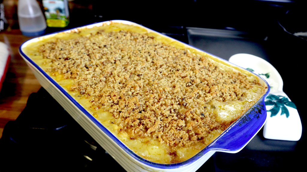 - Sprinkle the breadcrumb mixture over the casserole evenly.