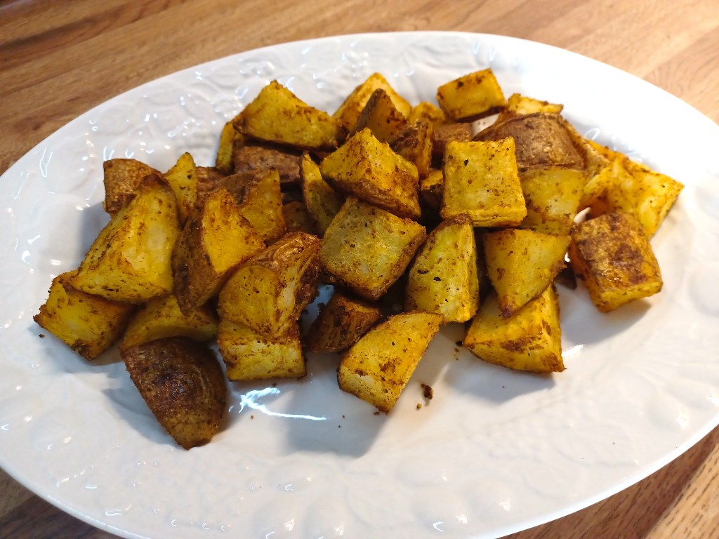 These potatoes are tender and fluffy in the center, crispy on the outside, and full of slightly spicy seasoning as the coating. They are the perfect pairing for any meal.