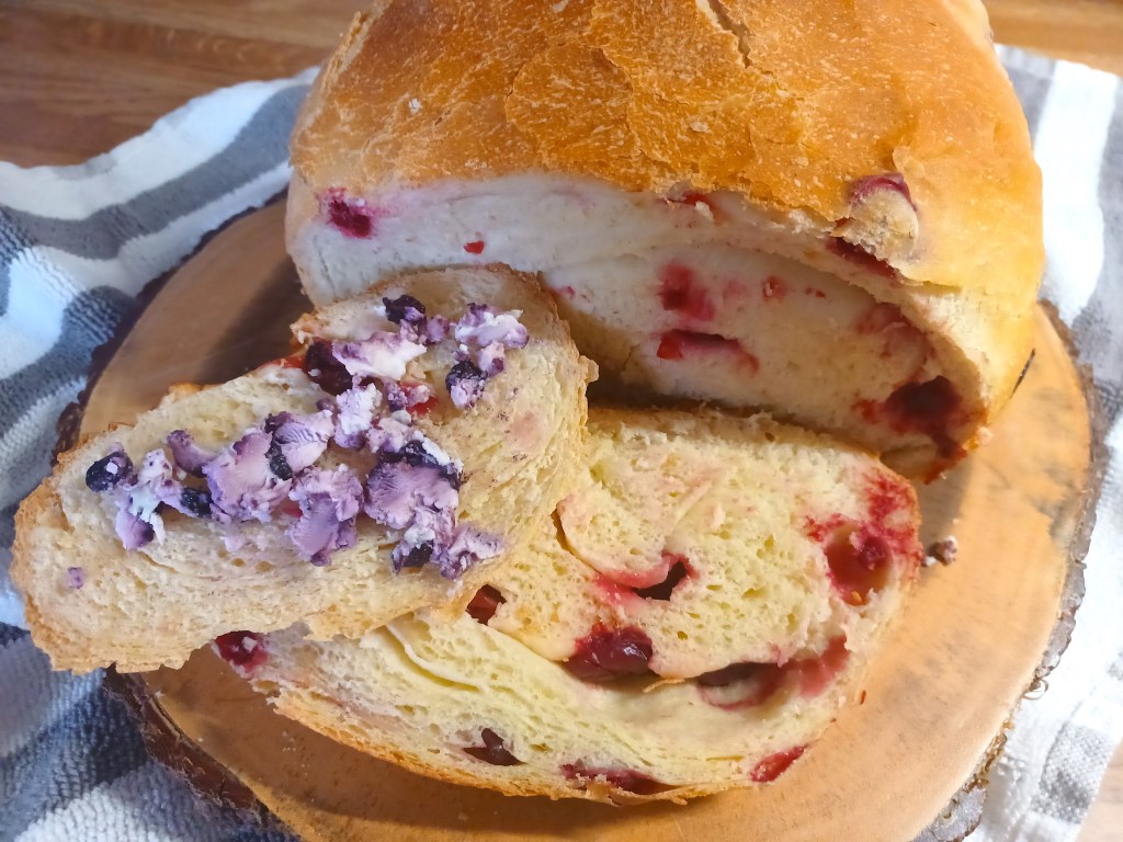 I think this is one of my favorite “Holiday Bread” recipes. It is so good served with a nice breakfast plate or a bread pudding. The sweet and slightly orange flavor pairs really well with the tart cranberries. I love having this as a quick snack or toasted with a bit of butter and topped with blueberry vanilla goat cheese. However you serve this delicious bread, it is going to be a crowd-pleaser.