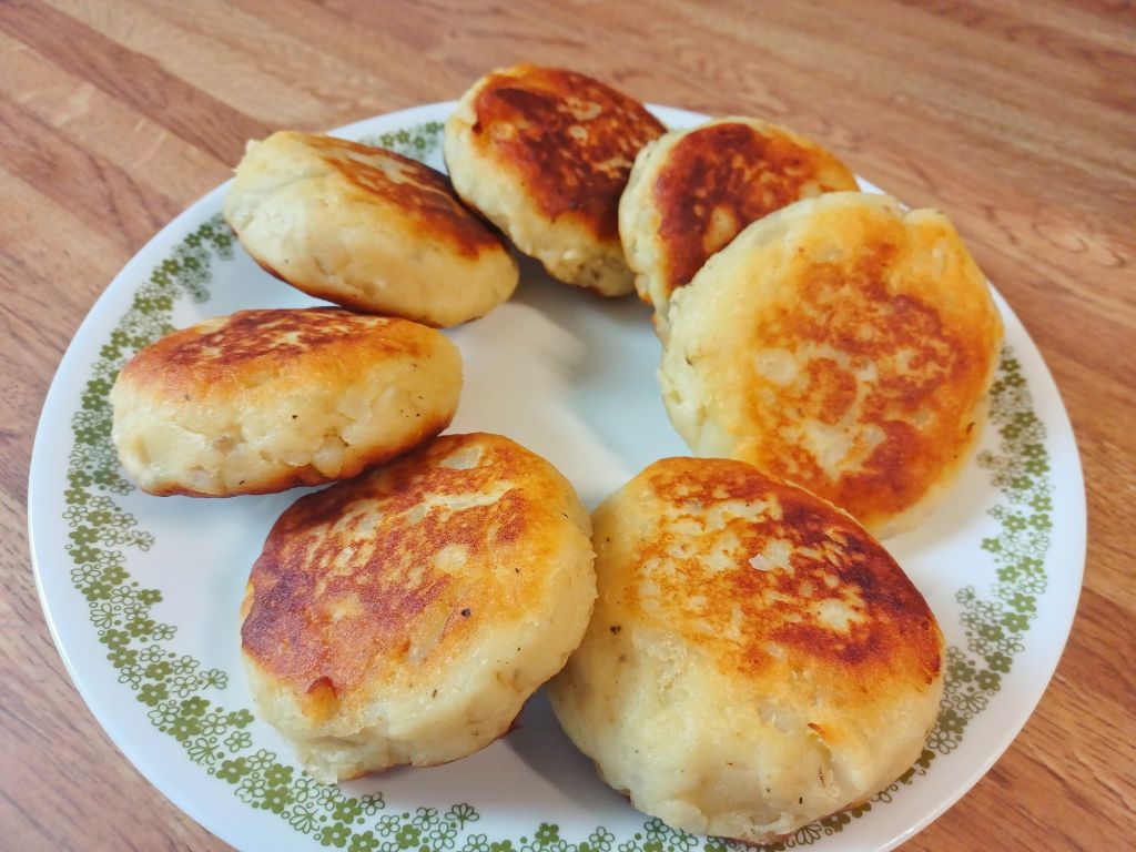 I remember every time my dad made mashed potatoes he would cook double the amount and put half in a bowl and put it in the fridge for the next day. The next day before dinner he would bring out that bowl and let it come to room temperature. He would then go on to add all of the other ingredients, patty them out, fry them in oil, and serve them with either fried chicken or hamburger steak and gravy.